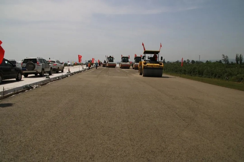 楊廳長一行重點檢查了6標杏林塬隧道出口、7標石溝隧道出口、8標2號梁場段路基、9標路基及路面水穩層施工。每到一處檢查點,楊廳長都會細心聽取項目公司及參建單位有關人員的講解和說明,詢問、了解本管段內存在的問題,現場做出安排和指示。