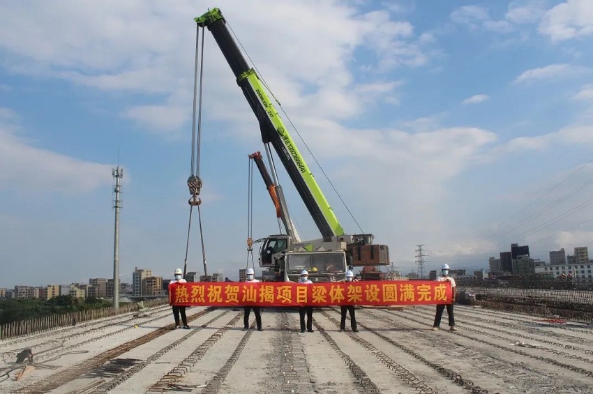 ? 汕揭項目洞內(nèi)水庫大橋右幅最后一跨箱梁成功架設