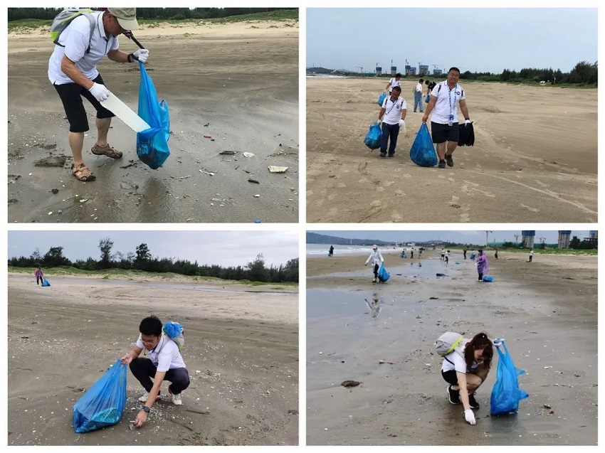 穿上防雨用具,帶上清灘所需工具,踏上了長達3公里的清灘征程,一路沿途撿拾垃圾,回望干凈的南沙灣海灘,心中油然而生一股自豪之情。通過開展此次活動,展示了項目職工積極向上、勇于奉獻的精神風貌,喚起了項目職工的環保意識。
