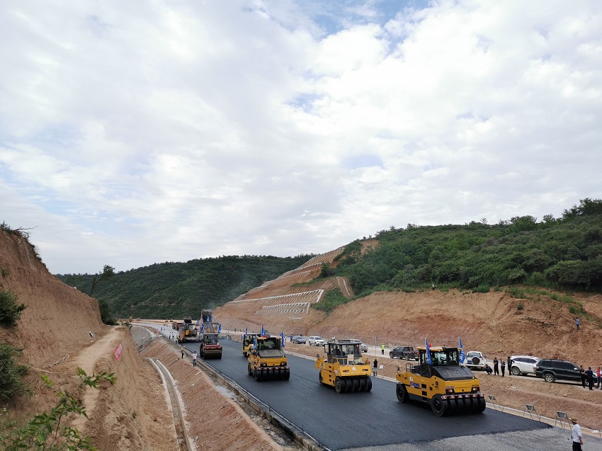 ▲九只窯進口瀝青下面層試驗段碾壓施工
