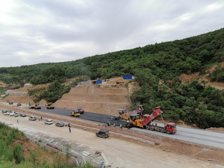 ▲九只窯隧道進口瀝青下面層攤鋪施工