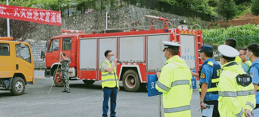 6月16日,富硯公司聯合地方政府部門、高速交警、路政、醫院、養護單位,在富硯高速上行線新寨隧道開展了隧道交通事故、火災處置應急演練。