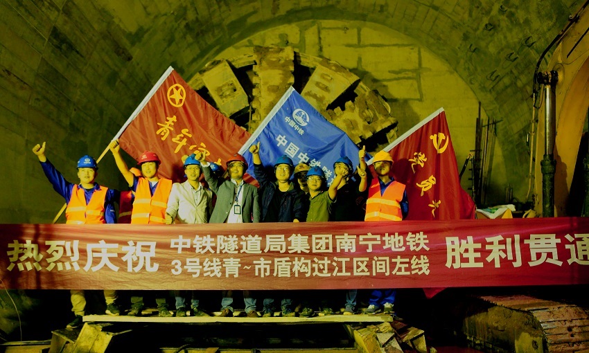 ▲青秀山站至市博物館站盾構過江右線隧道貫通