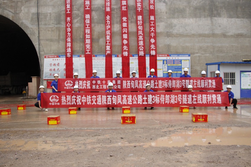 旬鳳高速土建3標位于陜西省彬州市境內,是旬邑至鳳翔高速公路2020年通車計劃中重點構成部位。項目正線全長8.674km,其中隧道工程長度4.208km,占比48.5%。本次貫通的侍郎湖3號隧道左線長2.312km,為標段內最長隧道,也是目前旬鳳高速已貫通的最長隧道。