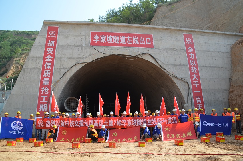 在“抗疫情、保增長,大干100天”專項勞動競賽如火如荼開展之際,7月8日,旬鳳高速公路項目又一個施工隧道——土建2標段李家坡隧道左線順利貫通。