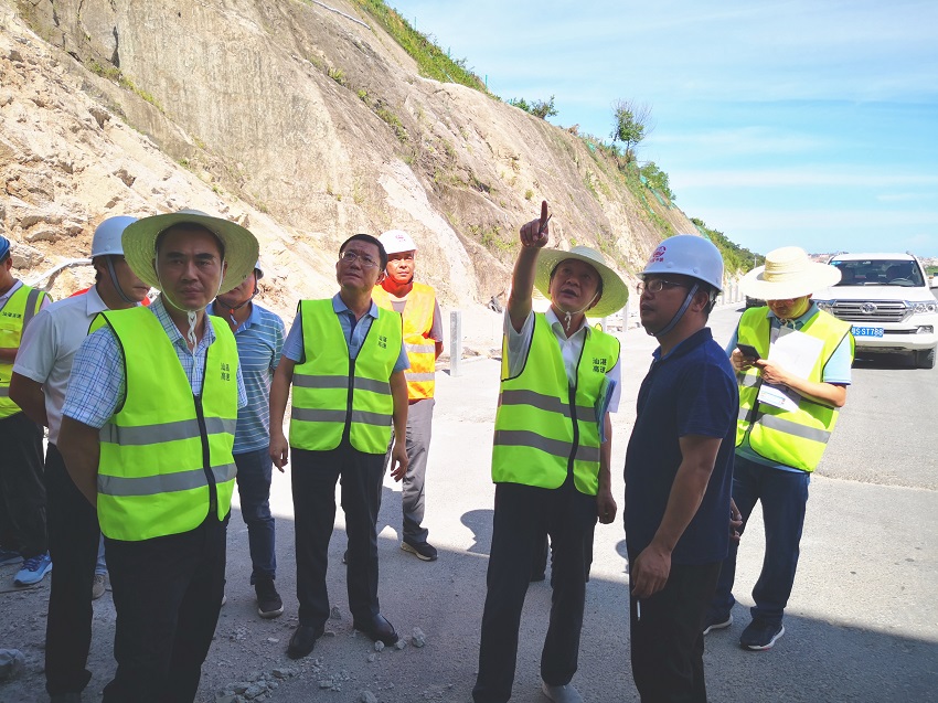 7月6日至7日,劉總帶隊深入全線施工現場,實地查看了濱海互通、五聯山隧道、棉北互通等全線重點工程建設情況,聽取了各參建單位負責人的施工進展情況匯報,了解現場推進遇到的問題,對項目在特殊時期加快復工復產、加強安全質量和疫情防控等方面所做的工作表示充分肯定。
