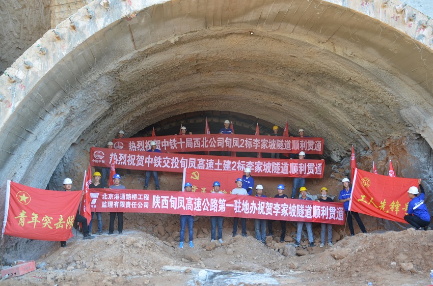 旬鳳高速土建2標項目李家坡隧道,是全線唯一一個1000m以上單頭掘進的隧道,隧道右線總長度1013m,圍巖等級為V級,下穿沖溝,隧道埋深最淺處僅20m,施工難度大,安全風險高,自2019年2月施工,歷時525天順利、安全實現貫通。施工過程中,項目上下通過制定周密的計劃,對作業班組進行系統培訓交底,狠抓關鍵環節,為隧道順利貫通提供了堅強保障。