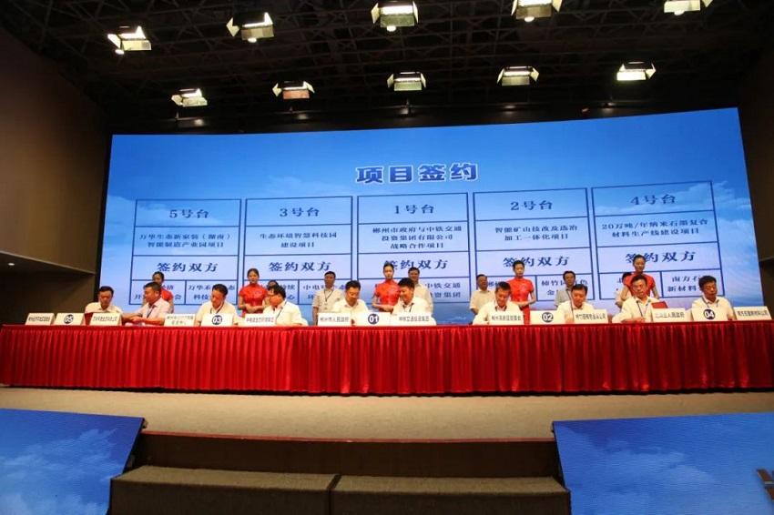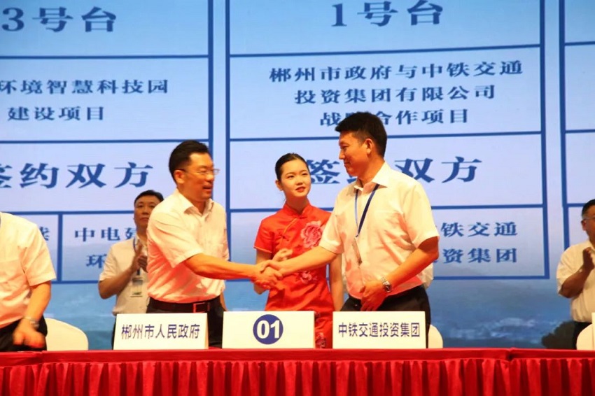 郴州市副市長賀遵慶與中鐵中南區域總部(中鐵交通)副總經理王建龍代表雙方簽署了戰略合作項目。