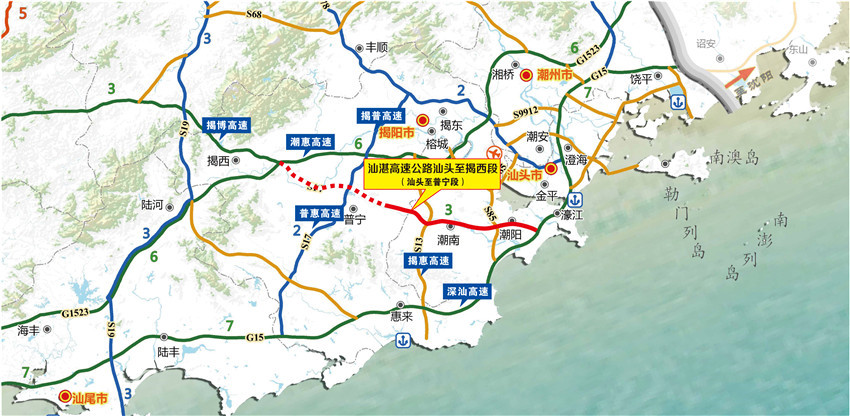 ▲廣東汕湛高速公路汕頭至揭西段(汕頭至普寧段)
