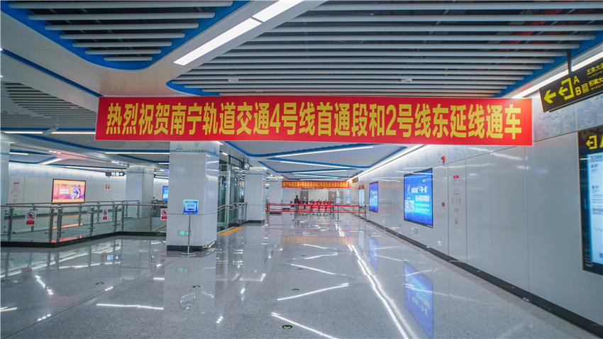 上午9時15分,通車儀式在南寧地鐵4號線體育中心東站舉行,中鐵中南區域總部(中鐵交通)總經理譚世俊,中鐵中南區域總部(中鐵交通)副總經理陳戈,中鐵廣西軌道交通指揮部、中鐵各參建單位建設者參加儀式并見證開通。