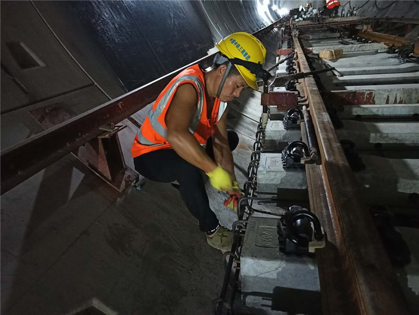 南寧地鐵5號線南起那洪,北至金橋客運站,線路全長20.2km,均為地下站。5號線為邕江南岸聯系城市西南—東北方向的骨干線,對于提高中心城區軌道交通服務水平,緩解擁堵,支持和引導城市空間結構優化調整,支撐江南、城西、城北及昆侖大道南、北等組團發展具有重要意義。02標段共鋪軌10.748km,鋪設9#單開道岔16組,交叉渡線道岔2組。