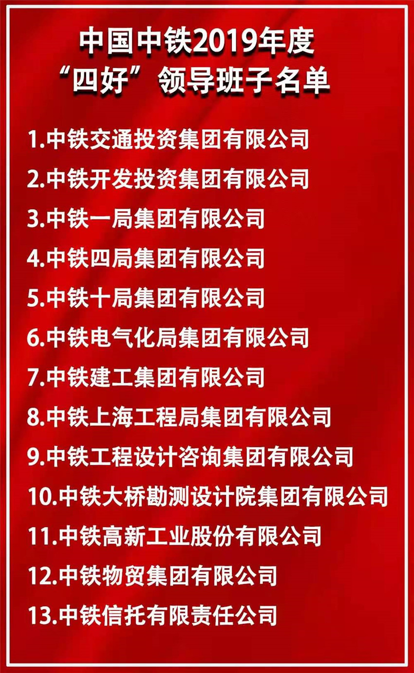 ▲中國中鐵2019年度“四好”領導班子名單