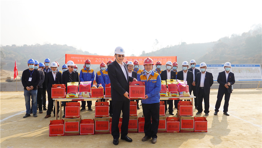 民主生活會(huì)前,譚世俊一行前往南橫項(xiàng)目第一合同標(biāo)段百合互通路基檢查指導(dǎo)工作,并開展了“冬季送溫暖暨春節(jié)慰問”活動(dòng),將組織的關(guān)愛送到南橫項(xiàng)目一線員工手中,提前恭祝大家新春快樂。