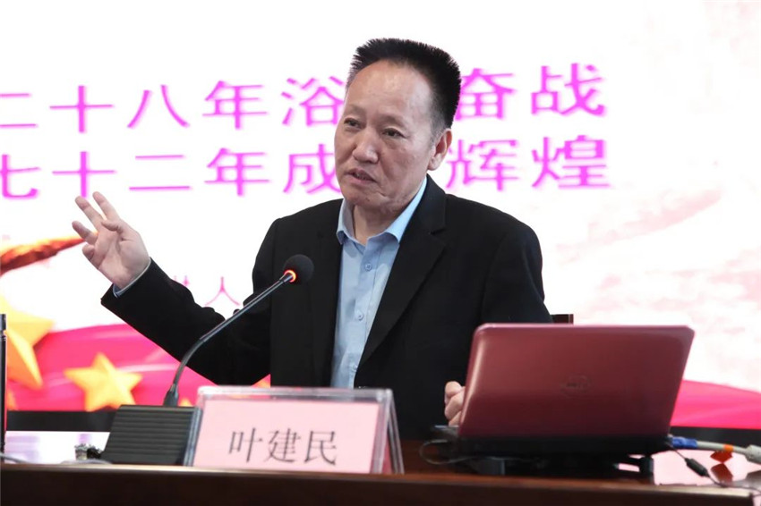 會上,葉建民作了《二十八年浴血奮戰 七十二年成就輝煌》專題報告。他以豐富詳實的黨史故事、史實資料,闡釋了中國共產黨百年輝煌的光輝歷程、歷史經驗、初心和使命,讓參會人員進一步了解了中國特色社會主義的理論淵源、發展脈絡和實踐邏輯,進一步理解了中國共產黨為什么“能”、馬克思主義為什么“行”、中國特色社會主義為什么“好”等重大問題。