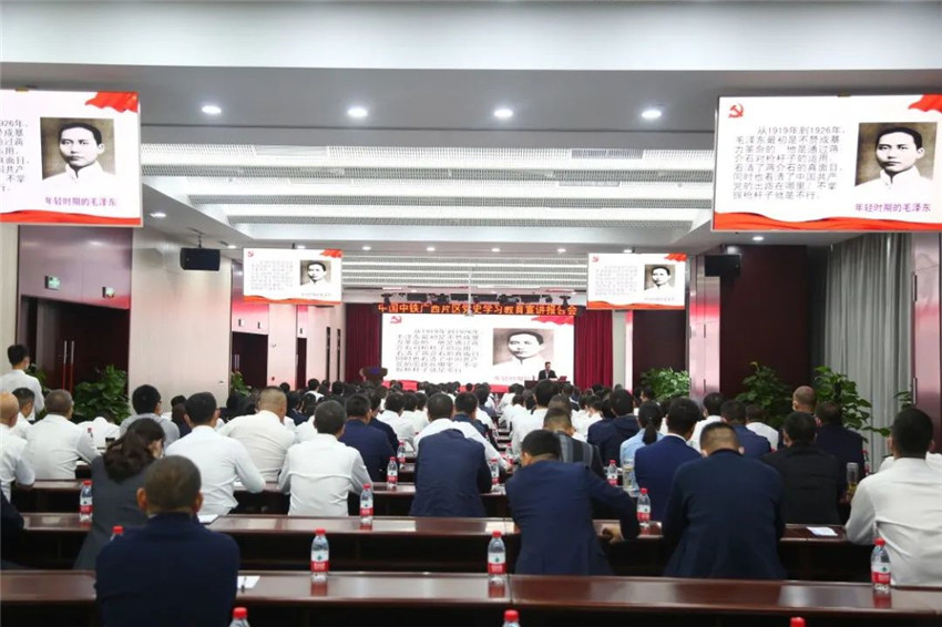 本次報告會,中鐵交通(中鐵中南區域總部)組織廣西片區中國中鐵各單位代表齊聚一堂,目的就是要進一步強化廣西片區中國中鐵各單位黨建共建共融,為實現中國中鐵系統內各單位資源共享和優勢互補搭建溝通交流的平臺和載體。中國中鐵廣西片區各單位將以本次黨史學習教育宣講報告會為契機,圍繞企業生產經營和黨建各項工作重點,找到最大公約數,畫出最大同心圓,切實將各方黨建互促互進的政治優勢更好地轉化為發展優勢,轉化為各方促進改革發展、服務職工群眾的實際行動,共同在新時代的長征路上取得新成效、新進展、新勝利!