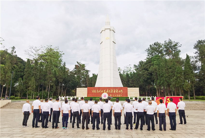 前往百色起義紀念碑緬懷革命先烈,在紀念碑前敬獻花圈、整理挽聯,瞻仰革命先烈,并在紀念碑前聆聽了一堂以《繼承先烈遺志,堅定理想信念》為主題的微黨課。