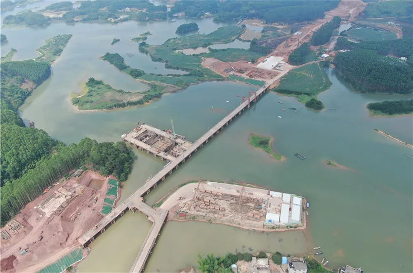 ▲魯塘江大橋首個樁頂系梁順利澆筑完成