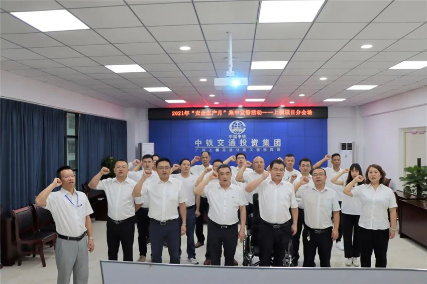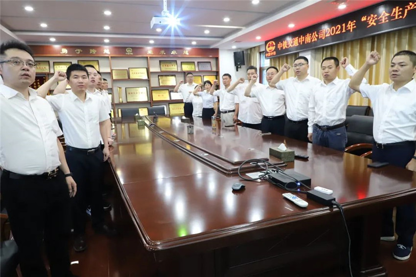 6月1日上午9時,根據中國中鐵統一安排部署,中鐵交通(中鐵中南區域總部)在機關辦公大樓會議室以視頻連線方式組織開展了2021年“安全生產月”安全質量宣誓活動。中鐵交通(中鐵中南區域總部)黨委副書記(主持工作)、副董事長(主持工作)譚世俊,黨委副書記、總經理李建光及在家領導班子成員,機關各部門和所屬在邕相關單位100余名黨員干部職工,在活動現場聆聽了中國中鐵黨委書記、董事長陳云在活動上的講話及項目經理代表發出的安全生產月倡議。