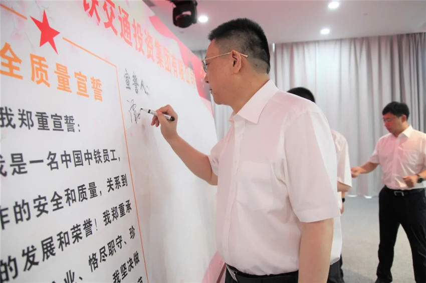 中鐵交通(中鐵中南區域總部)其他領導班子成員及所屬其他各單位800名黨員干部職工在項目駐地或現場,同步開展了安全質量宣誓活動。