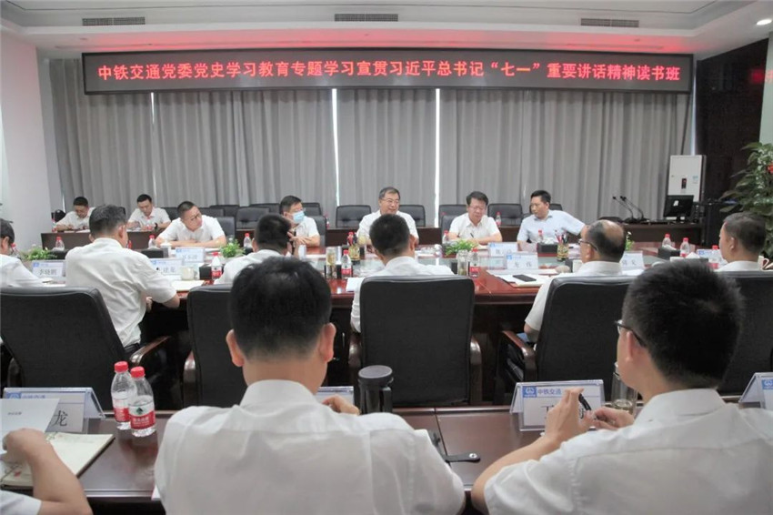 7月12日,中鐵交通黨委舉辦黨史學(xué)習(xí)教育專(zhuān)題學(xué)習(xí)宣貫習(xí)近平總書(shū)記“七一”重要講話精神讀書(shū)班,中國(guó)中鐵黨委黨史學(xué)習(xí)教育第六指導(dǎo)組組長(zhǎng)裴清寧、副組長(zhǎng)魏云祥列席參加讀書(shū)班,讀書(shū)班由中鐵交通黨委副書(shū)記(主持工作)、副董事長(zhǎng)(主持工作)譚世俊主持,中鐵交通黨委副書(shū)記、總經(jīng)理李建光及其他在家領(lǐng)導(dǎo)班子成員參加讀書(shū)班。