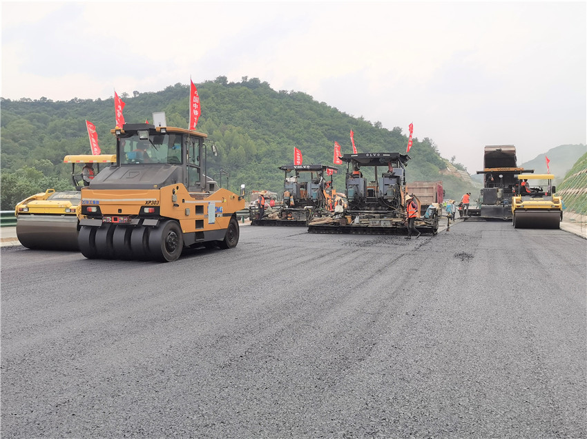為確保瀝青攤鋪施工質量,施工攤鋪前,項目公司要求項目部組織技術人員對施工、機械操作人員、現場管理人員進行技術培訓及安全交底;施工攤鋪過程中,項目公司緊盯落實,加強監督力度,全過程對瀝青混合料拌和、運輸、攤鋪、碾壓、檢測等環節層層把關,順利完成了本次瀝青下面層攤鋪施工,為順利實現全線通車總工期奠定了堅實基礎。