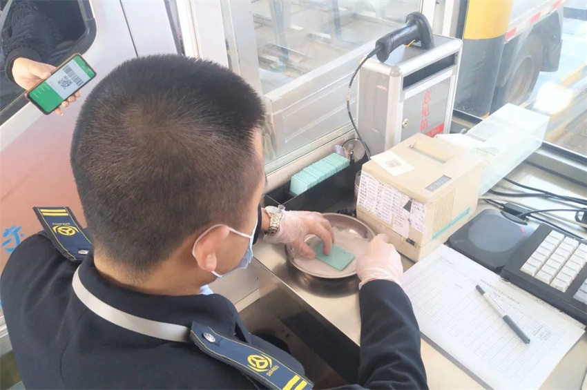 同時,要求基層一線路政、收費人員及收費車道疏導人員佩戴口罩上崗,收費人員戴手套保證與錢、卡、票據、查驗物品等不直接接觸,消毒及體溫檢測人員穿好防護服,CPC卡管理人員對上繳CPC卡用酒精棉擦拭消毒,確保做到“不被傳染,不做傳染源”。