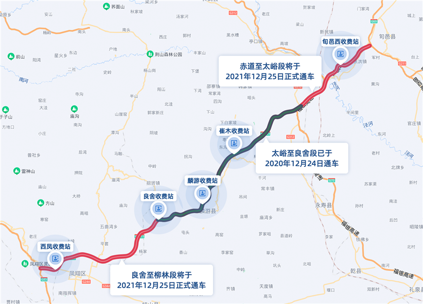12月25日,陜西旬鳳高速公路剩余段(良舍至柳林段、赤道至太峪段)正式開通運營,標志著由中鐵交通投資建設管理的陜西旬鳳高速公路實現全線通車運營。