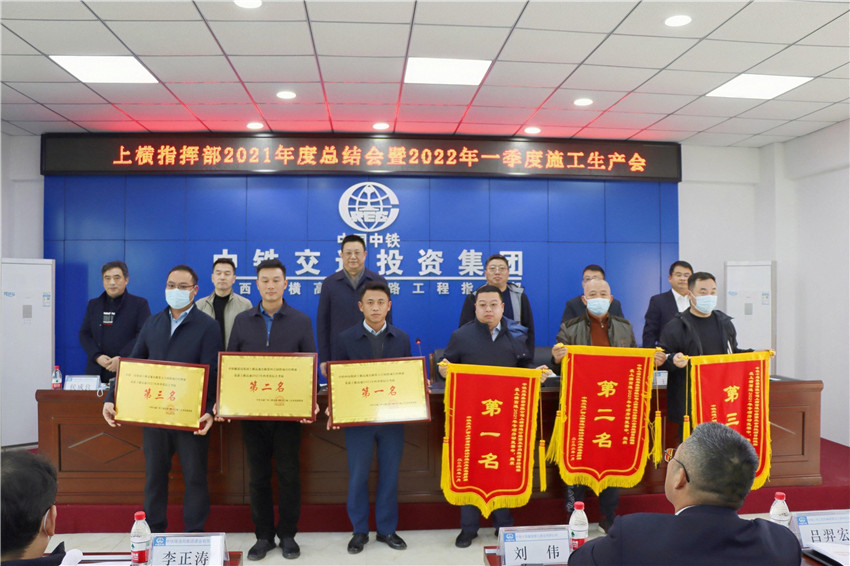 當(dāng)天下午,譚世俊出席上橫指揮部2021年度總結(jié)會(huì)暨2022年一季度施工生產(chǎn)會(huì),并為“決戰(zhàn)決勝四季度”專(zhuān)項(xiàng)勞動(dòng)競(jìng)賽先進(jìn)單位和綜合考評(píng)先進(jìn)單位頒發(fā)獎(jiǎng)牌。集團(tuán)公司副總經(jīng)理劉進(jìn)友,集團(tuán)公司生產(chǎn)運(yùn)營(yíng)管理部、綜合辦公室負(fù)責(zé)人參加會(huì)議。