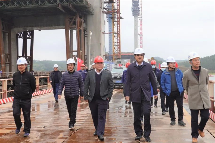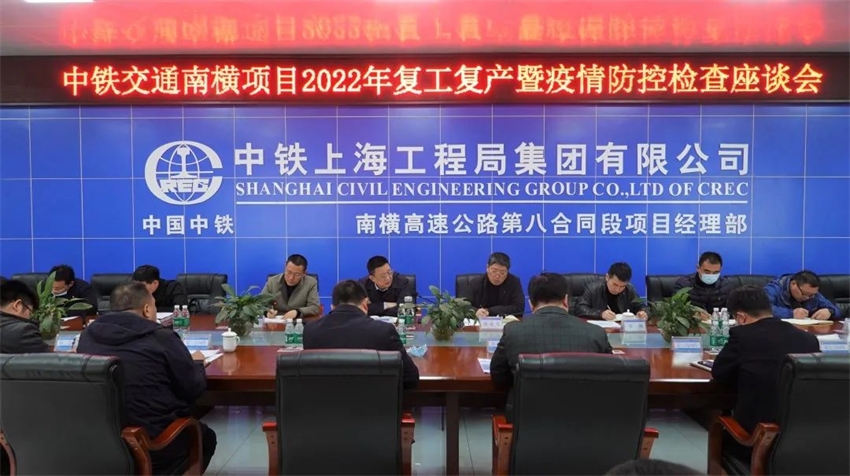 譚世俊現場聽取了工作匯報,實地查看了項目起點、梁場、砂石料場、沙坪河特大橋、運營管理中心等重要工程施工現場,并在項目部組織召開了南橫項目復工復產和疫情防控工作座談會。