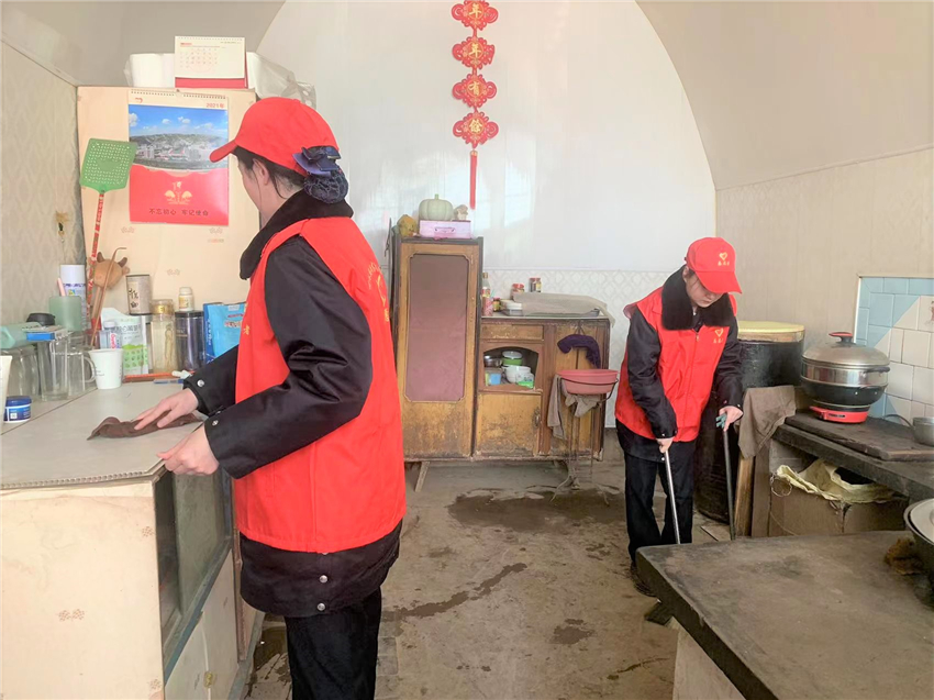 ▲志愿者幫助老人打掃衛生