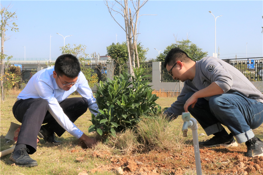 汕揭項目組織機關25名青年在駐地開展“植樹節”綠化活動,共種植了各類植物、果樹100余棵,為進一步優化項目環境作出了積極貢獻。
